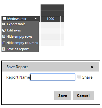 This is the standard option; enter your desired name of your report in the dialog and press the ‘save’ button.