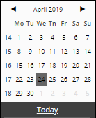 The third situation contains a calendar. In some situations data is displayed as a list box as described above, but in most situations a calendar will appear. This looks like this: