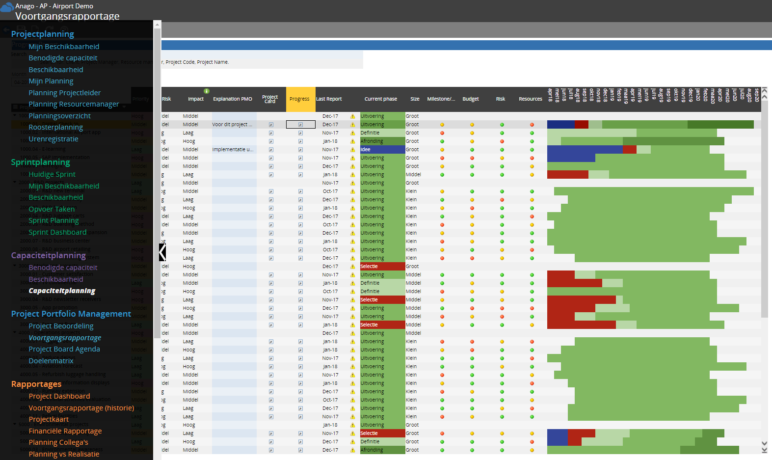 In this menu, there is an overview of all processes and process components of the application. When clicking on one of the process components, the relevant view for the selected time period (in the calendar) will open.When changes have been made to the current view, the application will first ask the user if these changes should be saved.
