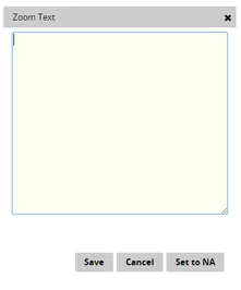 In the second case: When the $waarde$-icon is clicked, the textbox 'Zoom text' opens, in which the desired text can be typed. Then click on 'Save' to save the typed text. To adjust the content of a cell you can double click in that cell.
