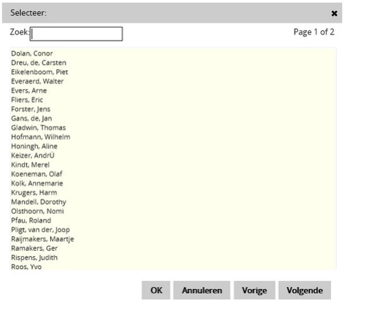 Relation icon: When clicking on the icon that appears in the text field ($waarde$) a list opens. The user can select the desired relationship from this list.