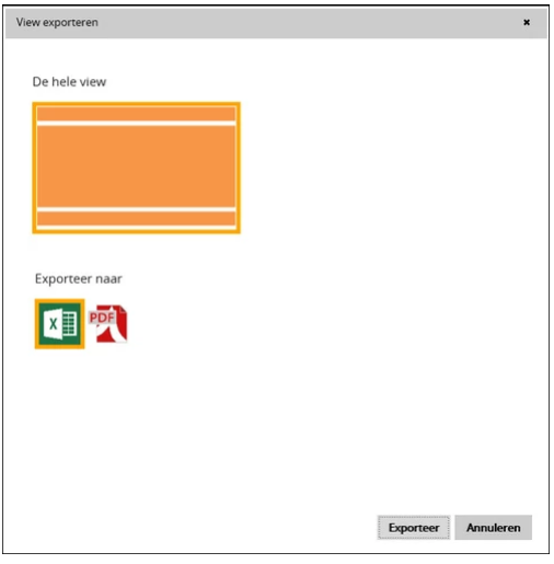Het exporteren naar Excel kan met de knop:en het exporteren naar een CSV bestand kan met de knop:. Wanneer er voor een van deze opties is gekozen, zal het bestand direct gedownload worden binnen de browser. Er kan dan worden gekozen om het bestand direct op te slaan op de computer of om het bestand te openen.