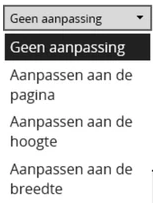 Vervolgens kan er gekozen worden om het formaat van de afbeelding aan te passen aan de pagina, slechts de hoogte of breedte van de pagina, of geen aanpassingen door te voeren. Dit zal de pagina schalen zodat deze op respectievelijk één pagina, één pagina hoog en N pagina's breed, of N pagina's hoog en één pagina breed.